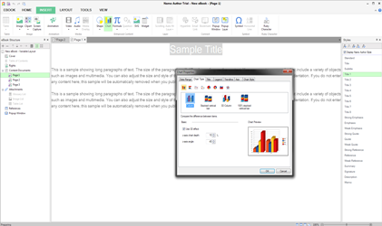 Variety of templates available to create EPUB3 ebook, e-magazines, e-novels, reports, brochures and more. Enter new text or import variety of file formats such as EPUB or NEP to easily and quickly create your e-book. You can also insert graphics, formulas, graphs and more to make your publication more interactive.