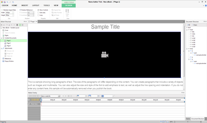 Add more action and excitement to your publication with videos. Simply upload videos to namo author from your computer, place anywhere in your publication and build an interactive magazine or e-book in fixed or Reflowable Layout for an EPUB3, EPUB2, MOBI, RePub and more formats. You can also customize the video and audio multimedia e-books using the variety of templates available in the tool. It is easy to add effects such as automatic play, repeat play and control lights in your publication by specifying file path in Design tab.